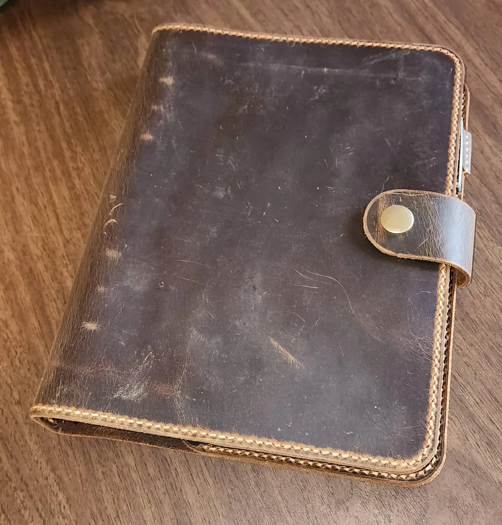 Distressed leather A5 A6 6 ring refillable planner binder cover