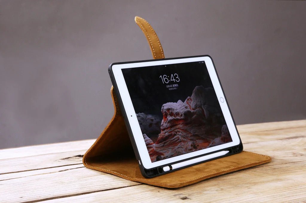 Handcrafted leather ipad mini 7 6 5 case with pencil holder