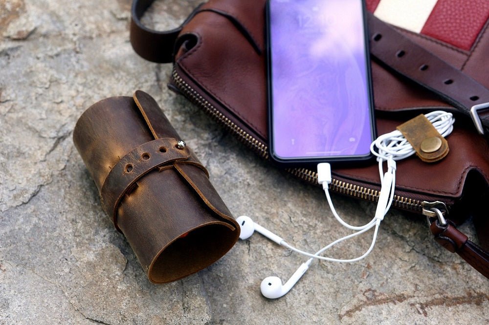 Leather cable management cord organizer charger bag