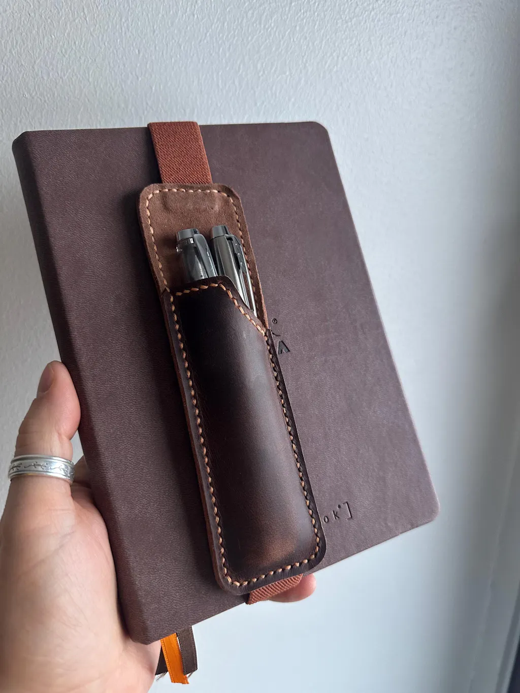 No more searching for a pen when inspiration strikes! Your pen remains attached to your notebook, ready whenever you need it!This leather double pens holder is specially designed for journal and planner with hardcover , it is made with genuine, high-quality full grain leather that offers a soft touch and is durable for everyday use ,a metal clip at back grips onto your journal securely, ensuring your pen remains in place as you move about.