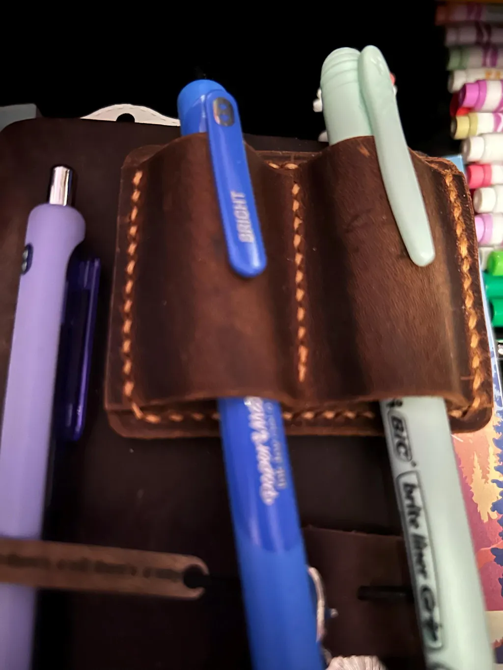 This PEN holder is not only functional but also stylish. The distressed leather gives it a unique and timeless character that only gets better with age. The leather's texture and patina will change over time, creating a one-of-a-kind piece that is uniquely yours.It also will be a unique and perfect gift for bookworm~