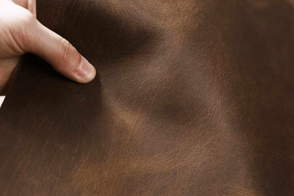 ✔ Full-grain leather: Natural grain, rich pull-up, and it patinas instead of peeling like faux or split leather.
