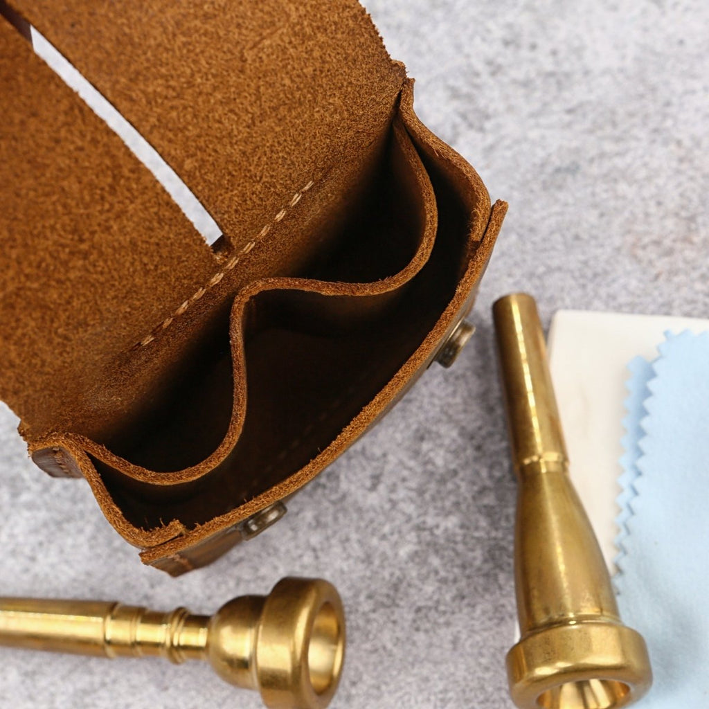 If you carry spare mouthpieces to rehearsal, gigs, or marching band practice, this little pouch keeps them safe, quiet, and right on your belt. It’s made from full-grain cow leather that breaks in beautifully and holds two standard trumpet mouthpieces. A simple snap-close design and a sturdy belt loop make it the kind of everyday gear trumpet players actually use—and it also makes a thoughtful gift for any trumpeter in your life.