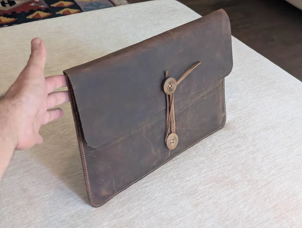 Distressed genuine leather macbook sleeve case