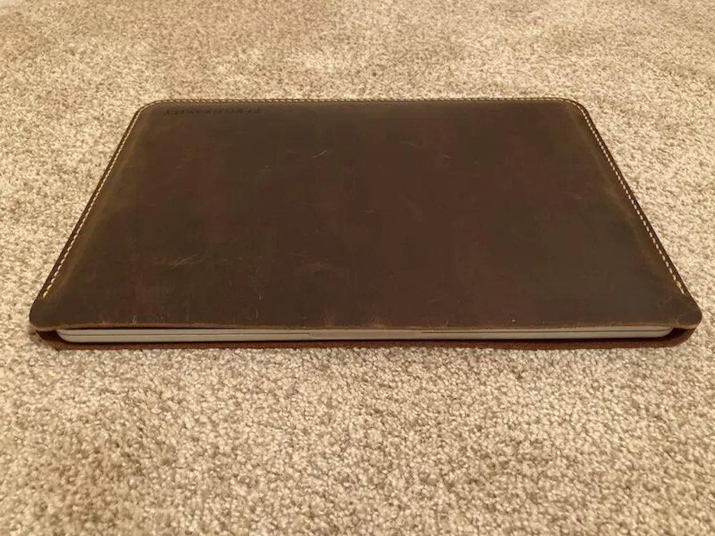 This sleeve offers a snug fit so your macbook stays securely (the best way to protect your macbook in the bag which have not a laptop compartment) and the natural look of the high quality real leather offers
