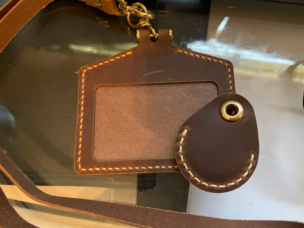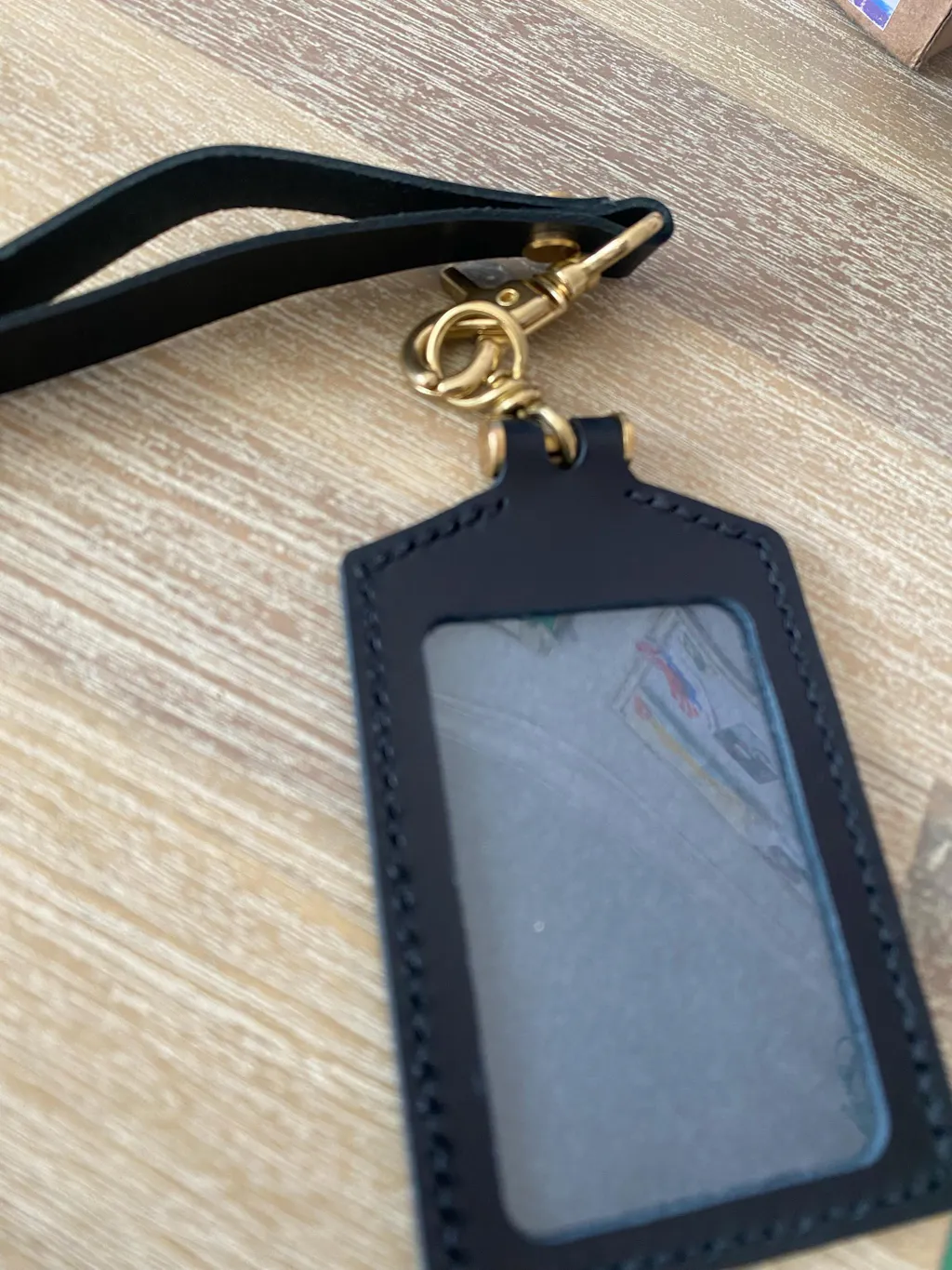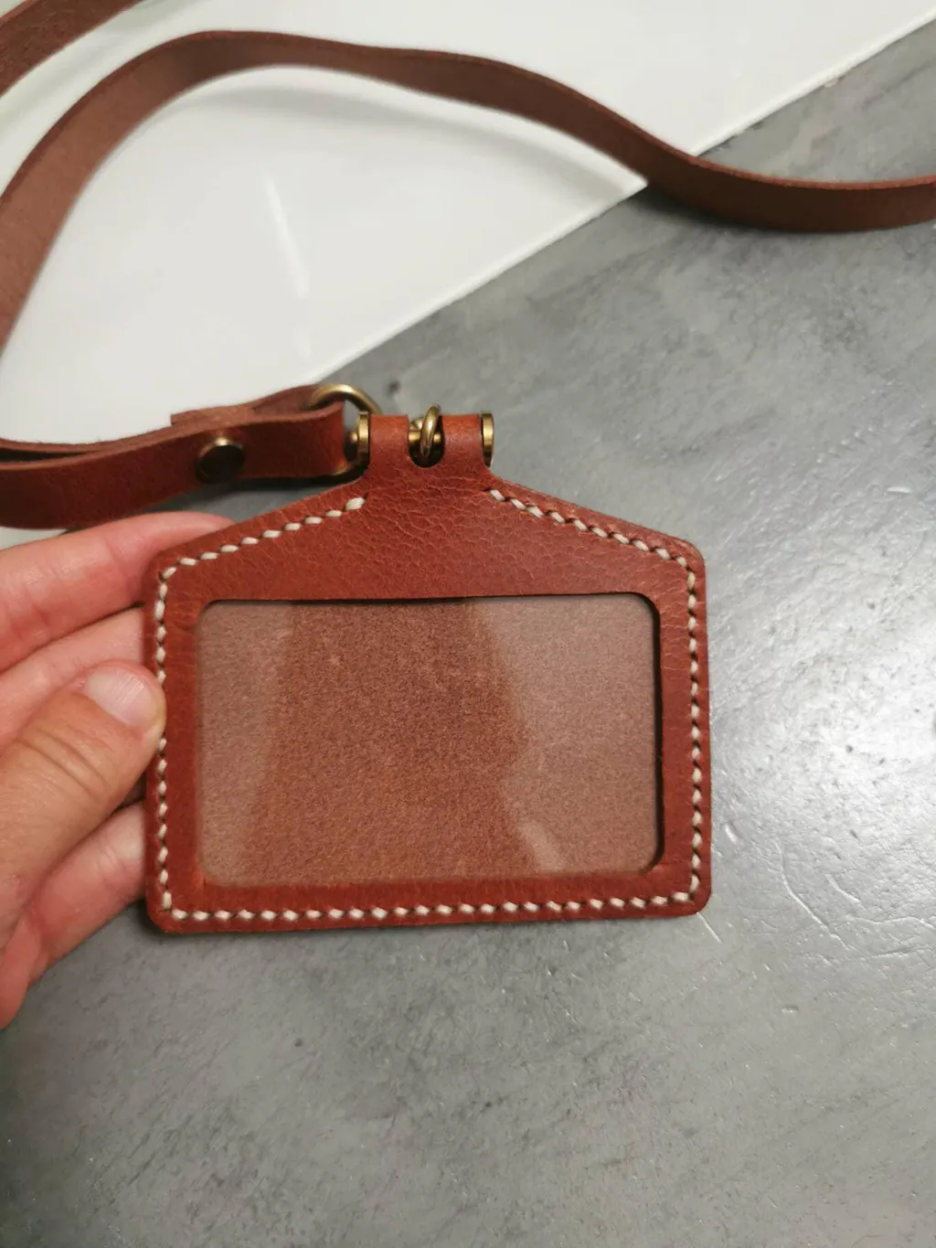 This ID badge holder with lanyard is made of premium full grain leather , all the hardware we used is high quality solid brass , it really bring a sign of quality to this badge holder!