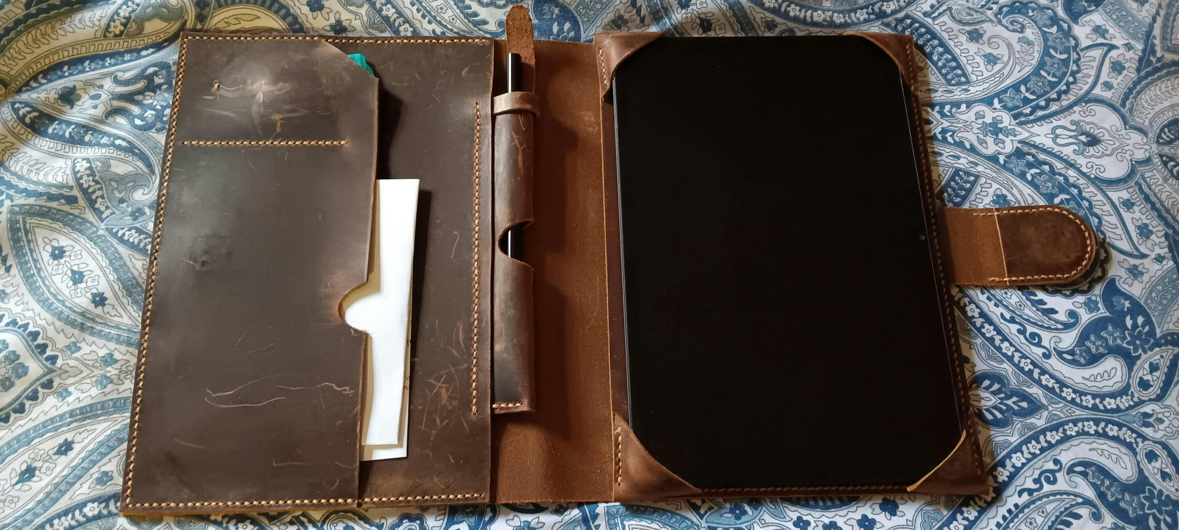 Handcrafted leather ipad mini 7 6 5 case with pencil holder