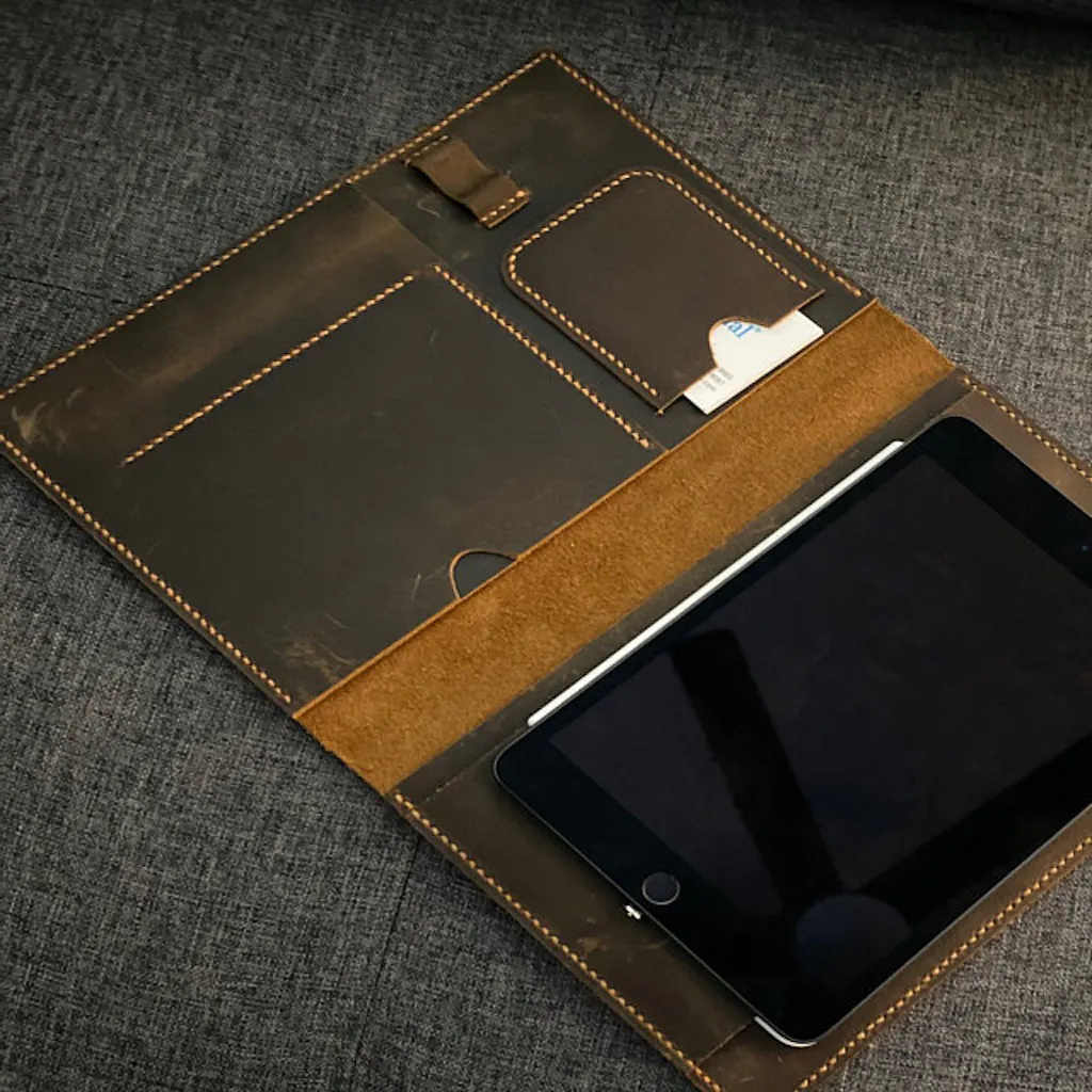 This Leather portfolio fit for A5 size Moleskine / Agenda notebook or other similar size notebook , made of high quality top grain cow leather , 100% HAND CUT and HAND SEWN .This version was special designed for a travel , you could put your card,passport,A5 travel diary,iPad mini into it . Use it to keep you organized in your travel :-)