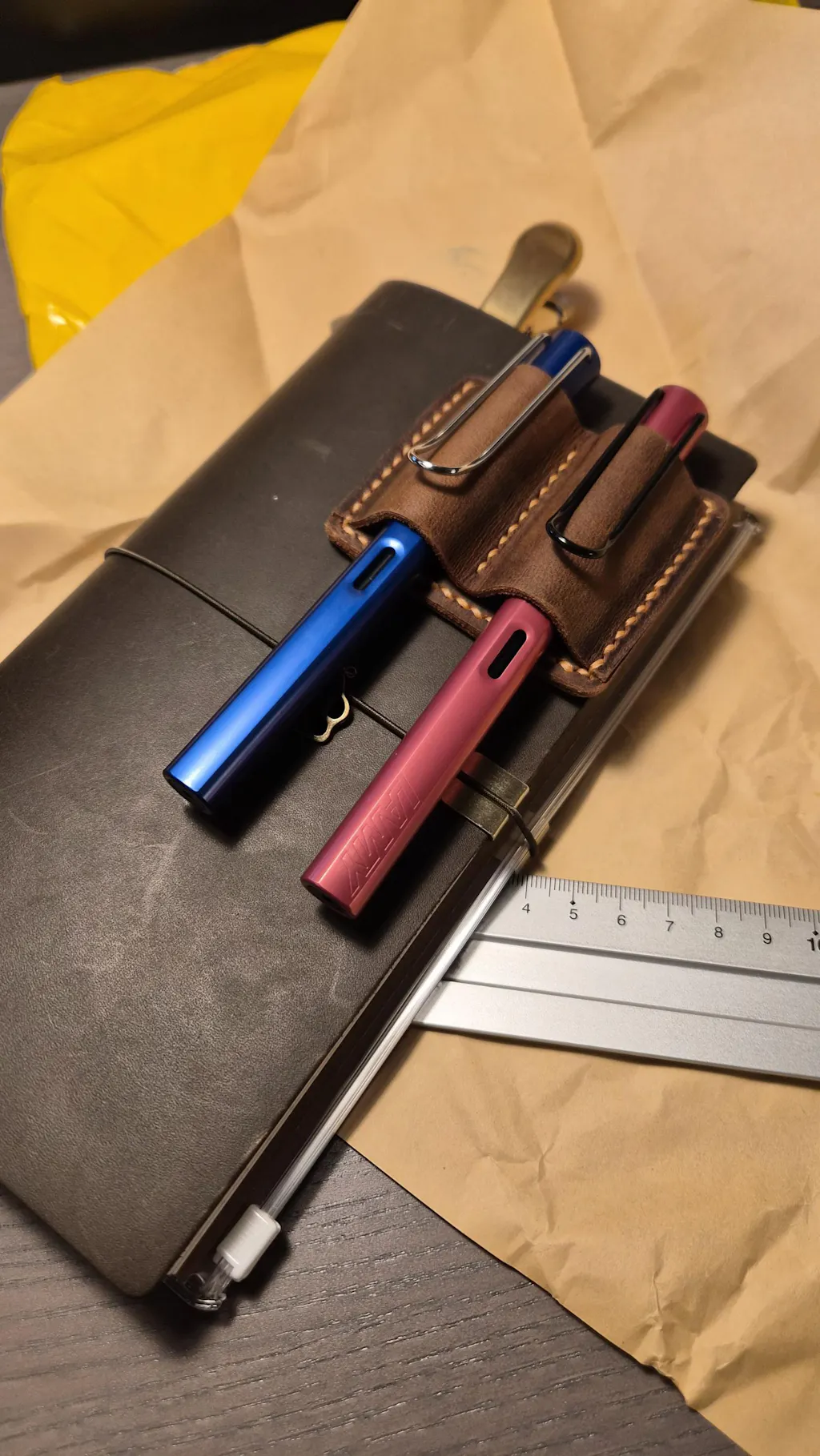 Leather pen pencil holder clip for notebook journal