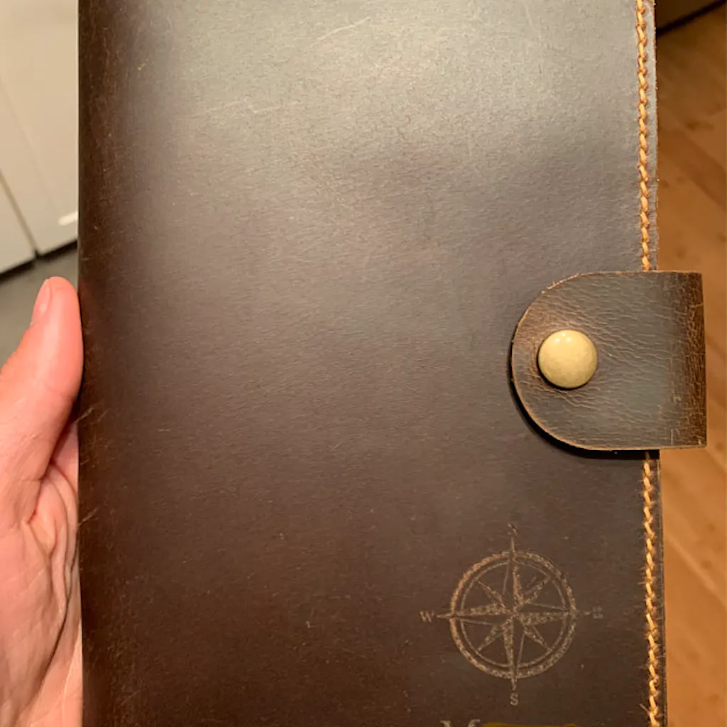 Personalized distressed leather A5 journal travel cover