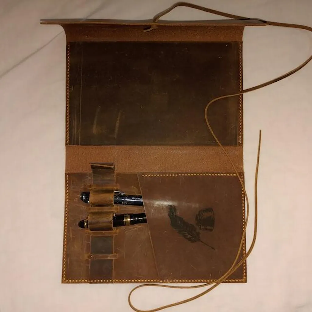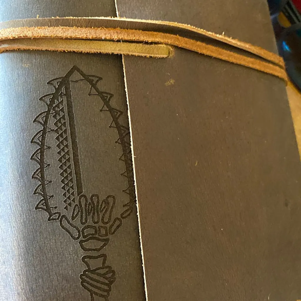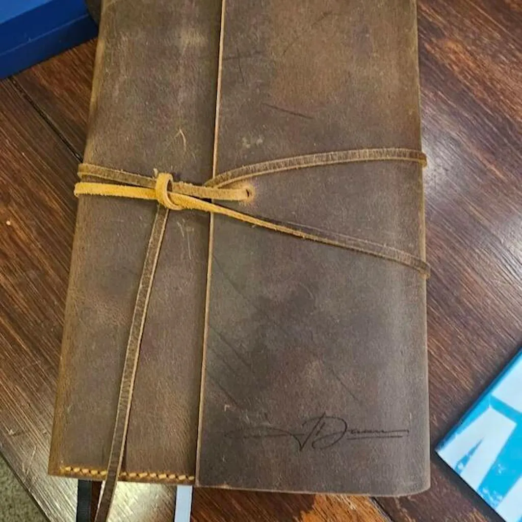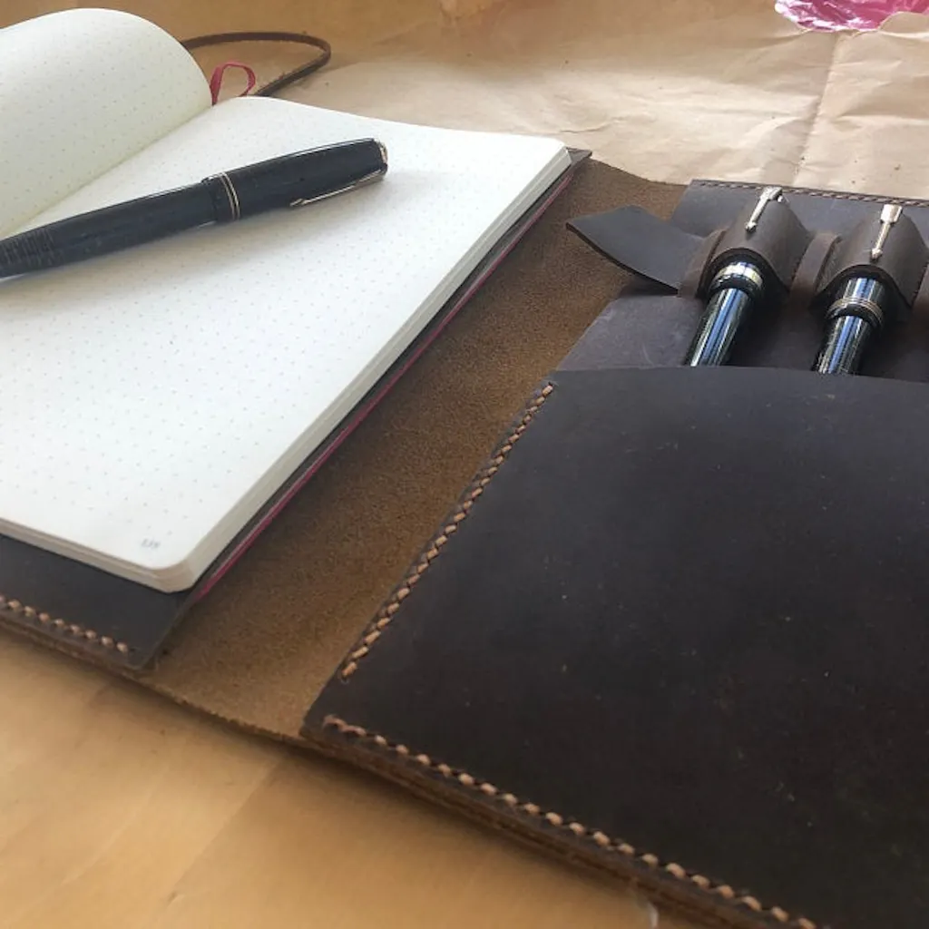 Personalized custom made genuine leather cover for A5 size notebooks.