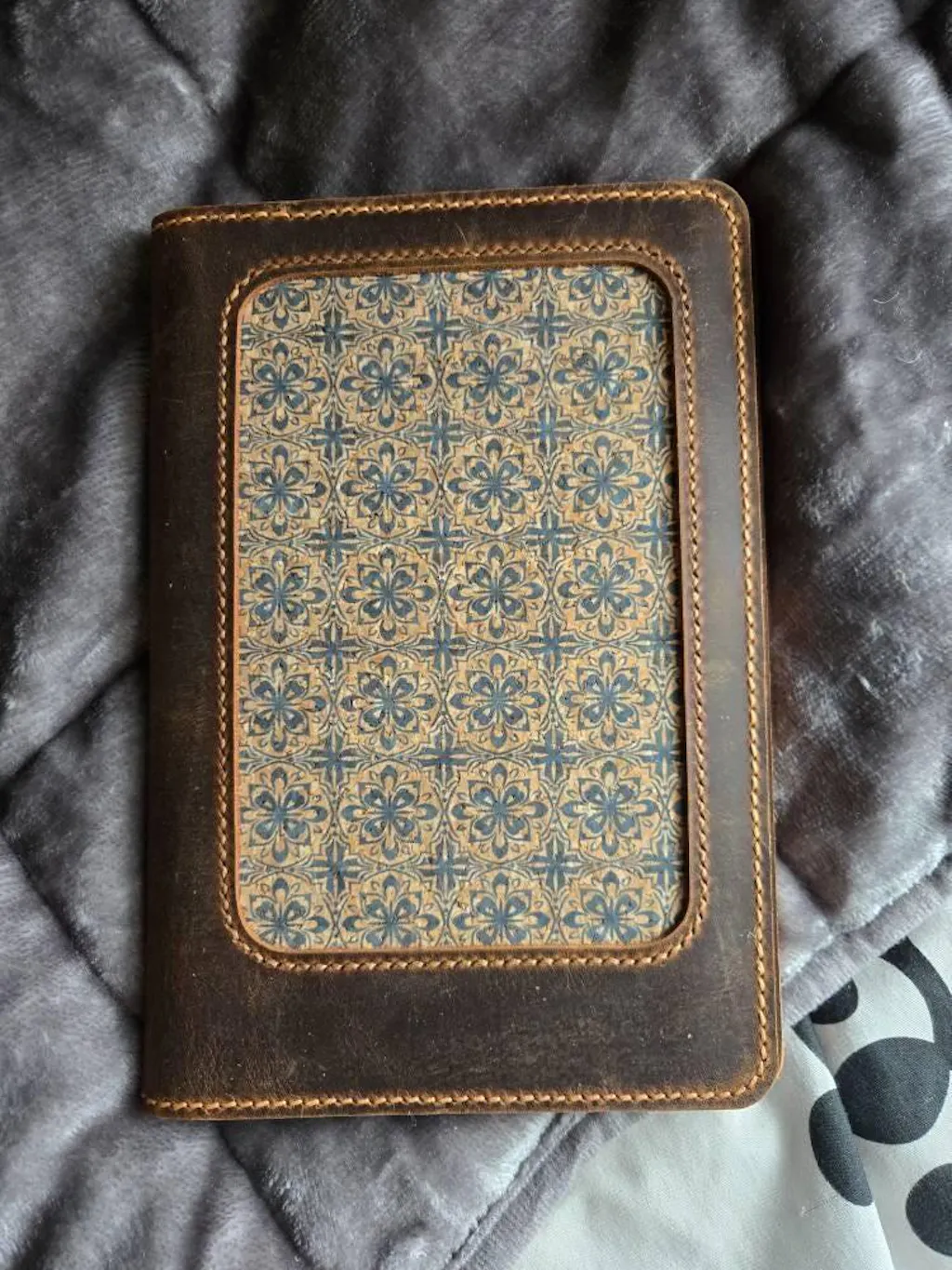This is a artistic leather cover with basic function to hold your lovely Planner . artistic printing on the cork sheet , rustic full grain leather , regular hand stitching , this combination give the cover amazing vintage looks. you could tuck the back cover into the right side of cover, there is a cut slot for the usage of elastic band of notebook .