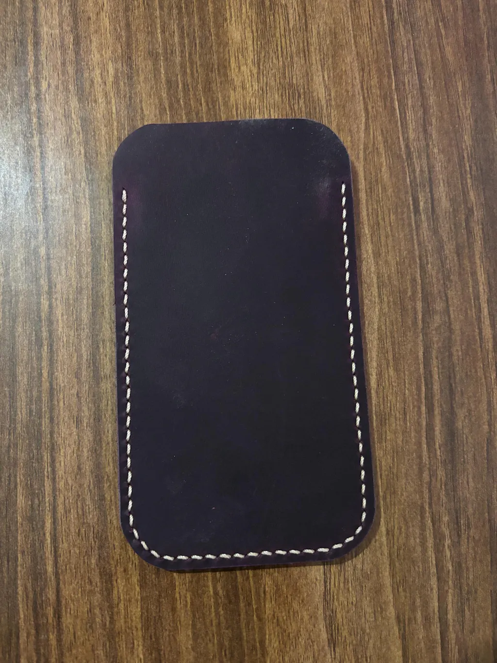 This minimalist Phone case is crafted from full grain purple leather and hand sewn with light brown waxed thread to ensure durability. the sleeve will protect your large screen phone adequately when you put it into your bag or your pocket , this great leather will age beautifully by time.