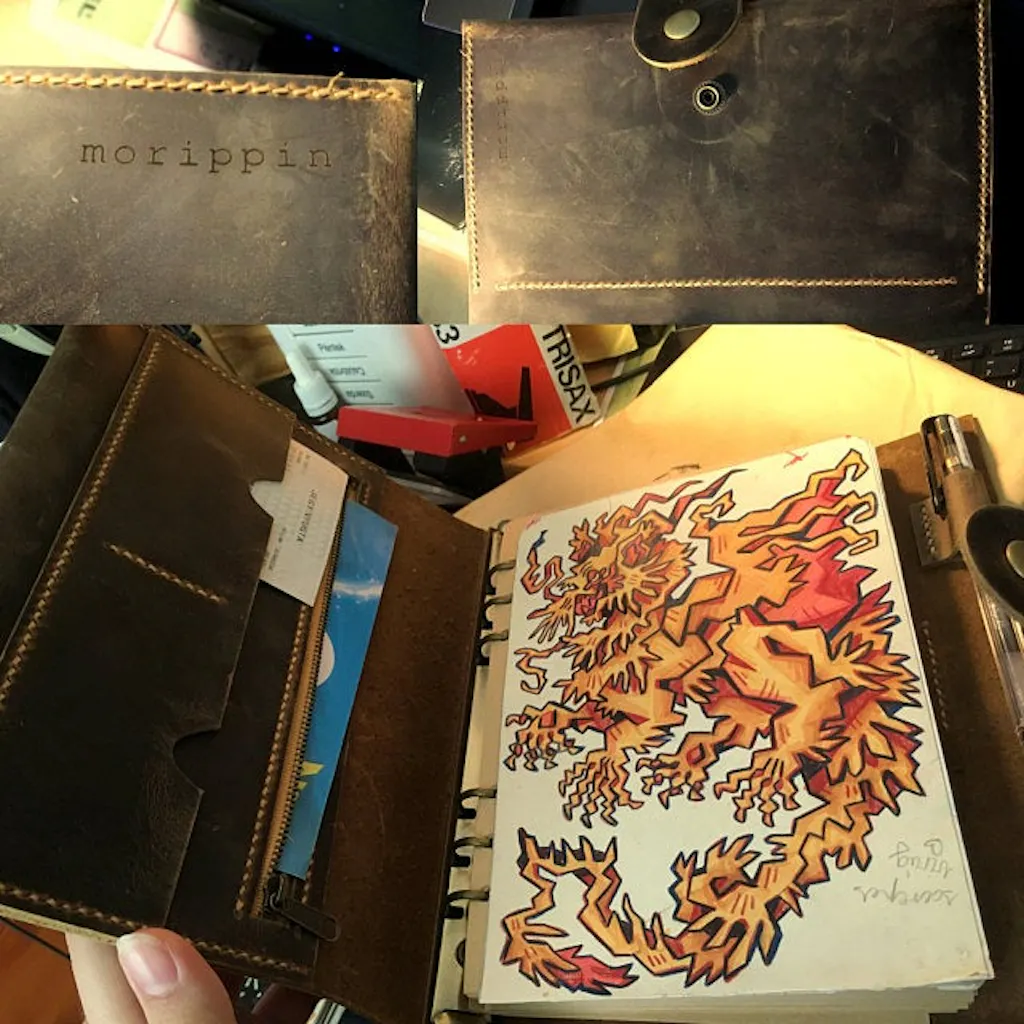 ✔ Top grain cow leather with YKK zipper and metal ring binder