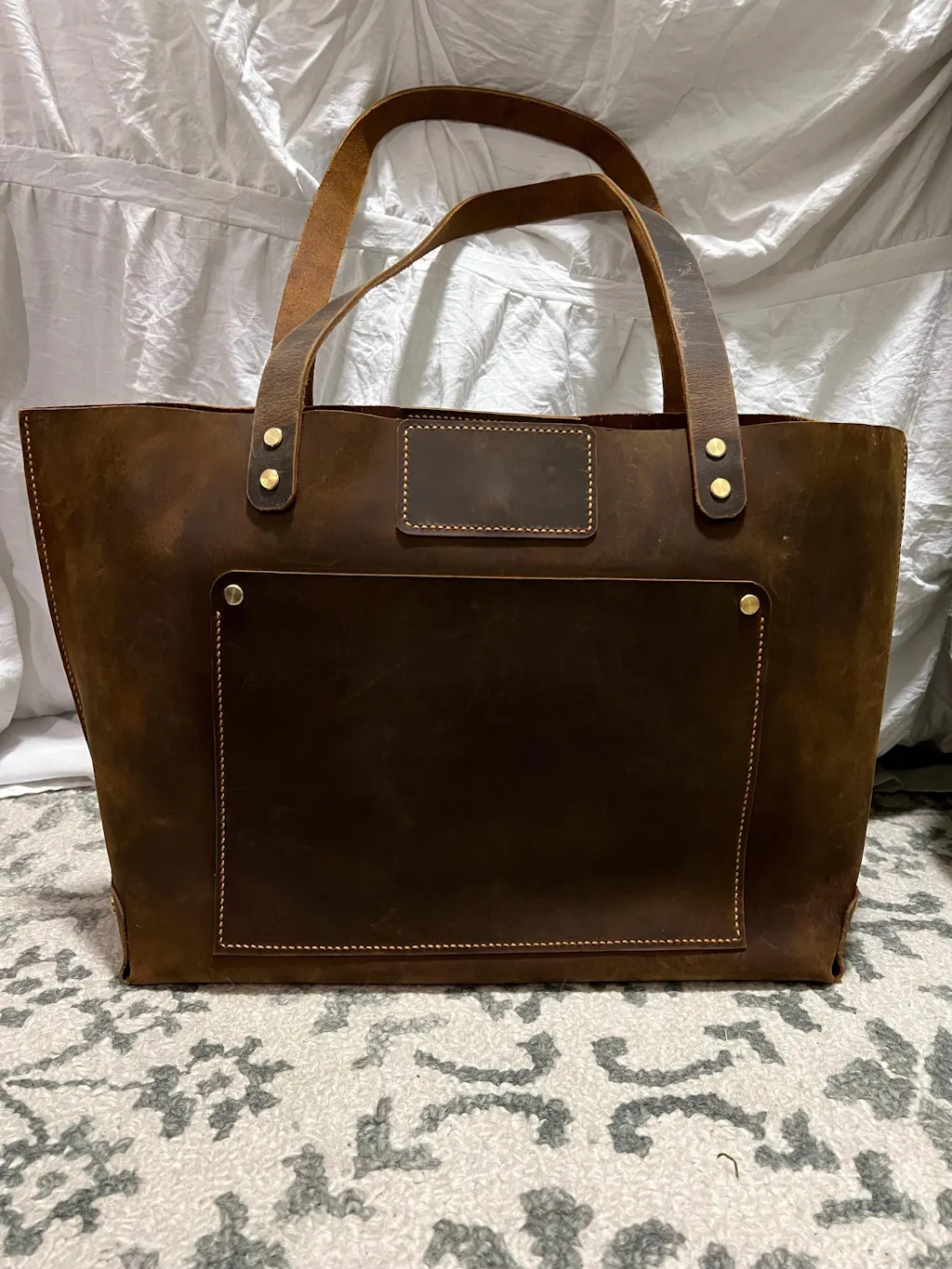 This leather large tote bag feature durable hand stitching and solid brass hardware , the combination will ensure its longevity and durability. perfect for your everyday use ! we hope you enjoy using it as much as we do creating it!